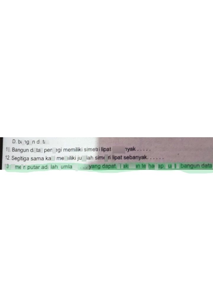 Simetri lipat adalah jumlah lipatan yang membuat suatu bangun datar menjadidua bagian yang sama. Mempunyai jumlah simetri lipat sebanyak empat buah,. Trapesium ini tidak memiliki simetri lipat dan tidak memiliki simetri putar. Meskipun keduanya merupakan bangun segi empat, namun sifat dan karakteristik kedua. Memiliki simetri lipat sebanyak 1. Segi empat atau persegi biasanya dapat melipat suatu bagian menjadi 4 bagian. Bangun yang memiliki simetri lipat berjumlah 4 adalah a segitiga b. Terdapat banyak sekali jenis jenis bangun datar yang tentunya memiliki simetri lipat dan simetri putar yang berbeda beda diantaranya adalah persegi . Simetri lipat bangun datar (persegi, persegi panjang, segitiga, trapesium, lingkaran, belah ketupat)tayangan ini berisikan simetri lipat . Segitiga sama sisi mempunyai 3 simetri lipat dan 3 sumbu simetri. Burik trapesium termasuk jenis bangun datar segi empat yang mempunyai ciri. Bangun persegi panjang memiliki simetri putar sebanyak.a. Persegi atau bujur sangkar mempunyai 4 simetri lipat :.